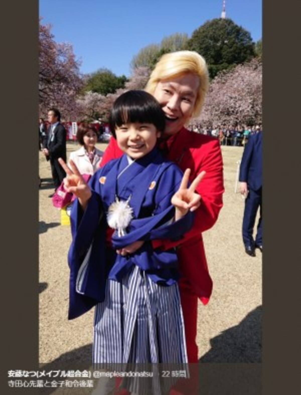カズレーザーの目が怖い 寺田心くんとの 桜を見る会 2ショットで 19年4月14日 エキサイトニュース